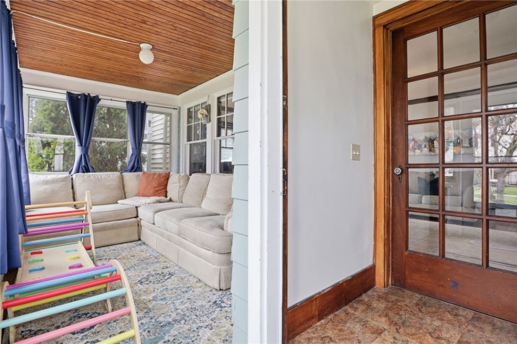 Welcome to 71 Curtice Rd, a 3-bedroom, 1-bathroom home in the West Irondequoit School District with Briarwood Elementary and the High School in walking distance. This home is balanced with the charming wide wood baseboards and updated mechanics. Walking into the home, there is an enclosed front porch with classic wood bead board ceiling and a front hallway entryway with a 15-pane wood door. Directly inside you are welcomed by a large bright living room with a fireplace and a built-in bookshelf with gorgeous original hardwood floors leading you to the dining room/ kitchen combo. In the galley kitchen, you'll find ample cabinet space with butcher block countertops and a pull-down magnetic knife storage keeping the countertop clear of clutter. A few more updates have been new backsplash and flooring, kitchen sink and new microwave, refrigerator and dishwasher with all appliances coming with the home. The spacious dining room has a sliding glass door that allows so much light to pour into the home. Around the corner is a main floor bedroom and a full bath. The main floor bedroom is ideal for guests, home office, or a single-floor living. In the bathroom, a brand-new tub and surround just installed, a newer vanity and a new vent fan. This spacious bathroom has many options for either a makeup vanity or could have laundry moved up from the basement to the first floor. Upstairs you will find 2 more bedrooms. The first bedroom has an open closet when you first walk in and a new sliding access door for the additional closet space. There is a generous walk-in closet located between the 2 bedrooms and all new carpet and flooring throughout the upstairs. Step outside to a private fully fenced backyard with a cozy patio accessible directly from the dining room perfect for entertaining. A detached two-car garage completes the home. This home is perfectly situated to many amenities. You are close to Wegmans, the zoo and Durand Beach and Park as well as Lake Ontario. Updates: Roof Full Tear Off 2024 with transferable warranty. New Electric Panel Box 2026, Gas Meter moved outside 2026, Newer Windows 2019, sliding door 2020, Fence 2019. All offers due April 21 at 10am.